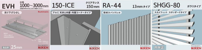 ラインアップは、アルミひさし、スパンドレル、内外装ルーバー、エキスパンションジョイントカバーの4品目です。