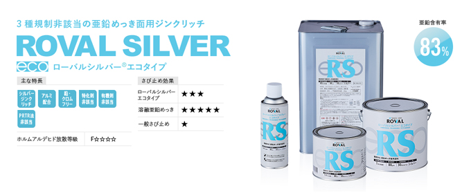 ローバルシルバーエコタイプは、3種の環境規制非該当に適合した環境対応型のめっき面用塗料です。