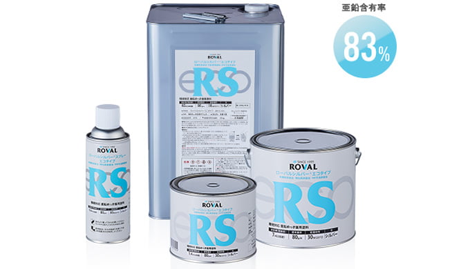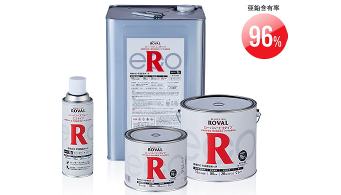 一般さび止め塗料に比べて強力なさび止め効果を持ち、シルバー色仕上げで亜鉛めっき面への補修に最適です。また、ローバル エコタイプに上塗りすることでさび止め効果がアップします。