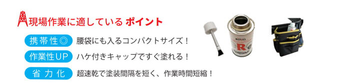 建材ナビ・スタッフからのコメント 工場内や屋内など、環境規制が抵触するような場所でも安心して使用できるローバルエコタイプ。そのローバルエコタイプの中でも、ポケッタブルパッケージはハケ付き&コンパクトで作業現場にも最適です!ご興味のある方はぜひ詳細ページよりご覧になってみてください。