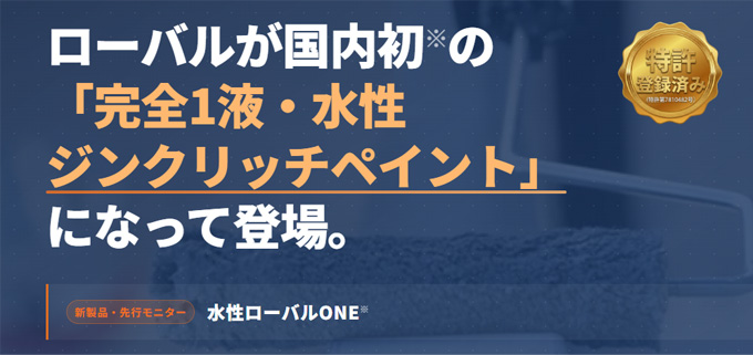 建材ナビ・スタッフからのコメント 新製品「水性ローバルONE」の先行モニター募集キャンペーンを4月1日から実施いたします。稼働中の屋内現場でもすぐに防錆塗装が可能で、臭いや手間もなく、現場での様々な悩みを解決してくれる製品です。ご興味のある方は、この機会に、是非ご応募ください!