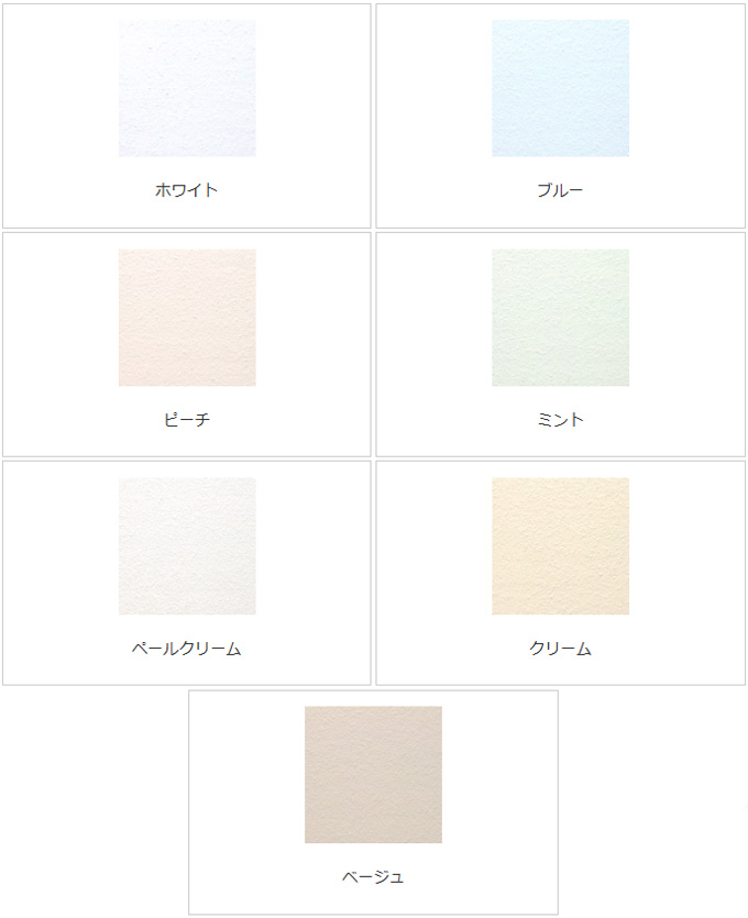 ホワイト、ブルー、ピーチ、ミント、ペールクリーム、クリーム、ベージュの7色がございます。