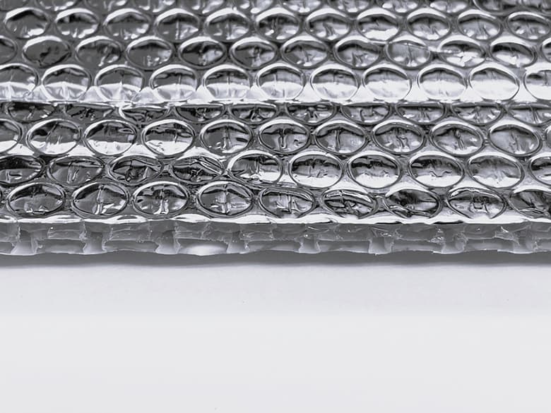 Eeeサーモダブルは、純アルミ+2層構造の気泡シートにより、太陽の強い輻射熱を強力に遮断。