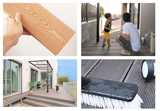 天然木材にありがちな「腐り」や「色落ち」、「ひび割れ」を克服。腐りに強く、塗装も必要としないので、お手入れも簡単です。