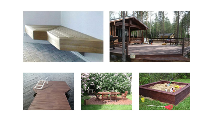 ■フィンランドで開発された、高熱木材乾燥技術により、普通の木材を腐りにくくする、 ノンケミカル高耐久エコ木材です。