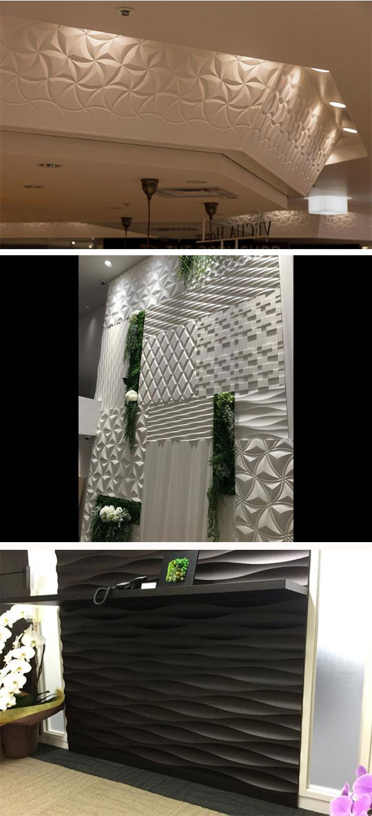 不燃材・木質材・ツキ板などの素材を立体的に加工することで、空間に新たな表情を付け加えます。