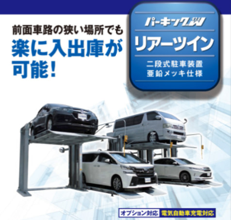 支柱を後方へ設置する設計で前面車路の狭い場所への設置が可能でラクラク駐車。