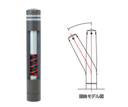 ゴム弾性とコイルバネ屈折機能により、優れた衝撃緩和性を有し、歩行者や自転車乗員の対人保護のみならず、車輛の破損防止にも配慮しています。