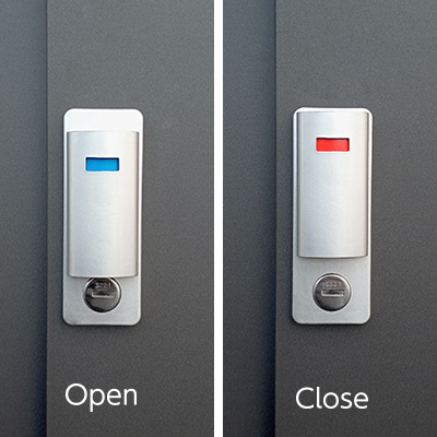 仮ロック・本ロック(施錠)の2重ロックで盗難防止。使用頻度の高い日中は仮ロック、夜間は本ロックと使い分けが可能です。