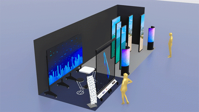 足元のアクションがそのまま画面に反映される、インタラクティブLEDビジョンを展示します。