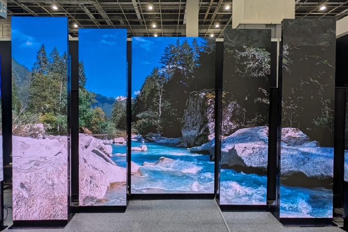 空間に溶け込む半透明フィルムサイネージを展示します。