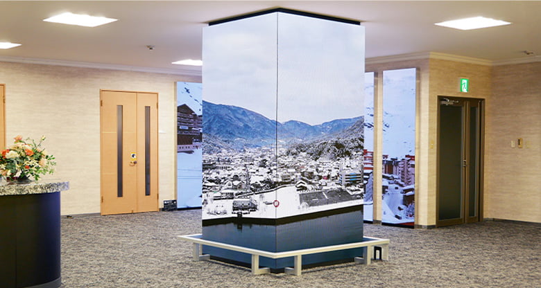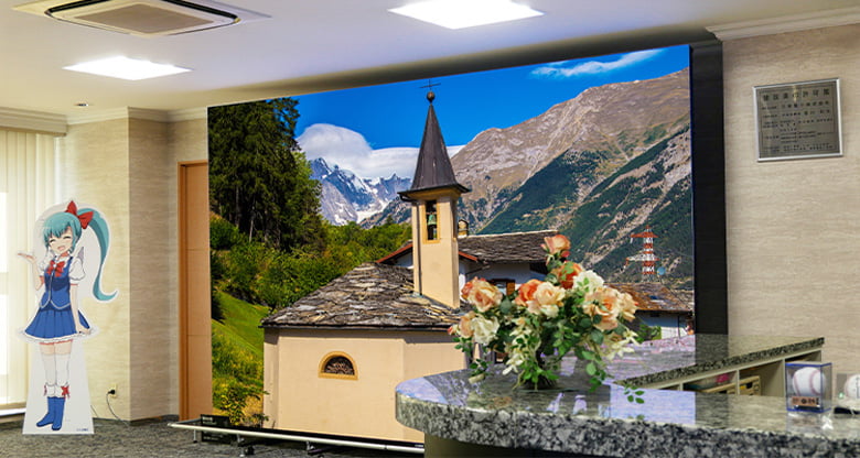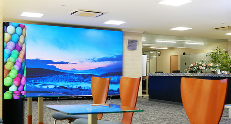 ショールーム見学では、三幸電子のデジタルサイネージ・LEDビジョン製品や