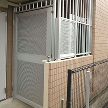 不審者が裏口から侵入して来るのを防止したい。 隣の建物から侵入可能なのでそれを防ぎたい。 外廊下や階段で、遮るものが無く視線が気になるので目隠しスクリーンを取り付けたい。