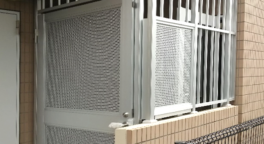 縦格子では手が入ってしまうところには、パンチングボードで防止することが可能です。