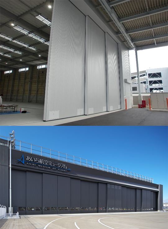 建物の機構を最大限に活かすドアの形状は多種多様で、その素材、重量、開口方式などはそれぞれに異なり、建築構造上最適のドアが個々に選択されます。当社では大規模工場・倉庫、航空機格納庫など、特に大型の開口部を必要とする国際的レベルで凌ぎをけずる産業分野からの需要が増加する傾向にあります。当社独自の移動式上レール方式の引戸をはじめ、エンジン装置付きドア、変速機付きドアなど個々のオーダーに的確に応える形状、素材で、建物の機能性、安全性、耐久性を高めるために重要な役割を果たす各種大型ドアを製作しています。