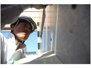 部分復元美装・リペアでは、現場のコンクリートの地肌を見ながら色を調合し、美術用具や塗装...