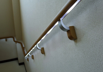 ■補助手すりとしての高い機能性に、やさしい”光”の表情をプラスした、光る補助手すりです。