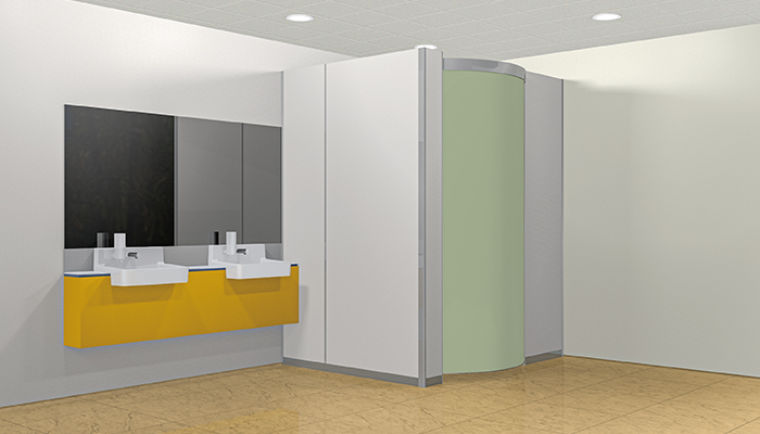 スライド式曲面ドアを採用したトイレブース「RブースTR40」にバリアフリー仕様を追加。