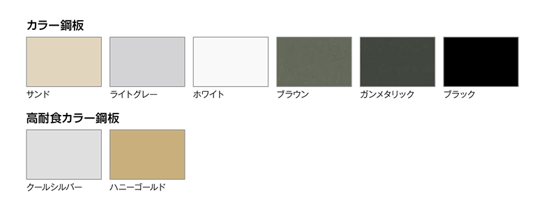 スラットは、お住まいの外壁やエクステリアのカラーと馴染の良い、カラー鋼板6色、高耐食カラー 鋼板2色の計8色をご用意しています。