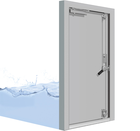 三和の防水商品「ウォーターガード・ダブルタイトドア」は、防水性・気密性・水密性を備えた2重タイト構造のドアです。