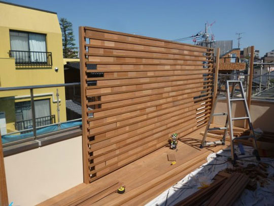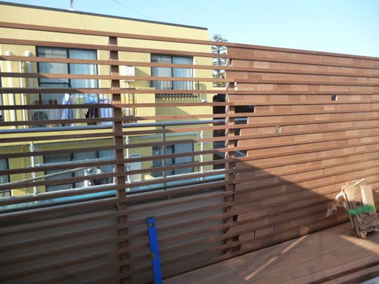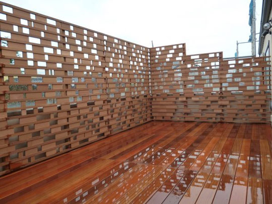 デザイン性に優れた「戸建て住宅テラスのウッドデッキ&フェンス」