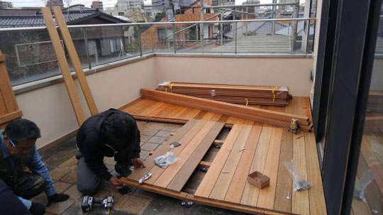 佐藤物産では、ウッドデッキの材料販売や設計施工、改修工事などを専門にしています。腐らずに20年以上の実績がある天然木材を自社で直輸入し全国販売しています。