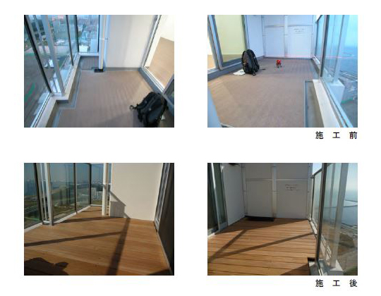 通常のウッドデッキ工事のように設置場所で大きなウッドデッキを作ると、設置に2日程度、撤去にも同様の時間が必要になりますが、10平米くらいのベランダであればパネルタイプですと約5時間ほどで搬入から設置までの工事が完了します。