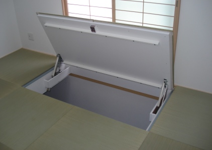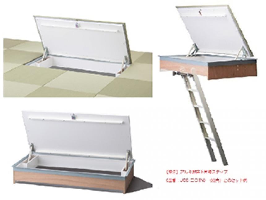 【建材ナビ】建築材料・建築資材専門の検索サイト  建築 設備 建材メーカー一覧  株式会社S・DC  ガスダンパー式大型畳下開口ハッチ(半帖畳専用)/アルミ製床下昇降ステップ