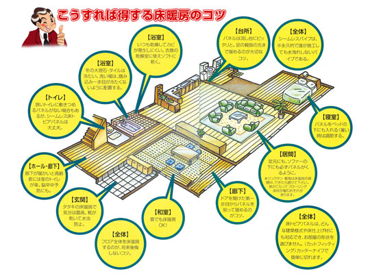 ③経済的:シームレス床暖房は、システム全体をシンプル&パーフェクトに開発。施工が容易で魅力の低価格。もちろん施工後に続くランニングコストも経済性抜群。