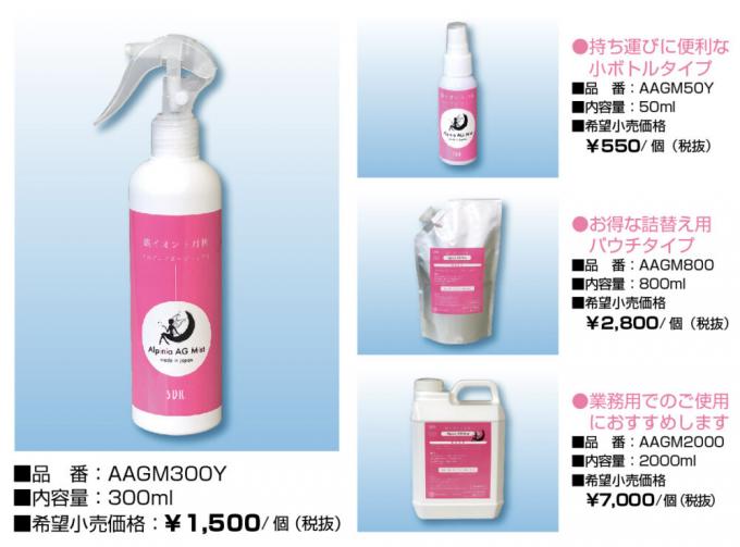 ■アルピニアエージーミストは、ピコサイズの銀イオン水(一般の銀イオン水はナノサイズ。その1000分の1)に月桃成分を配合した、人にも環境にも安心で安全な除菌抗菌消臭剤です。