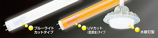 (ブルーライトカット、UVカット(低誘虫)、水銀灯タイプ)