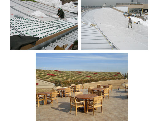 4.このシステムに採用している排水マットは傾斜屋根用に設計されているので、10リットル/m2(傾斜角度10°時)の保水能力がある。