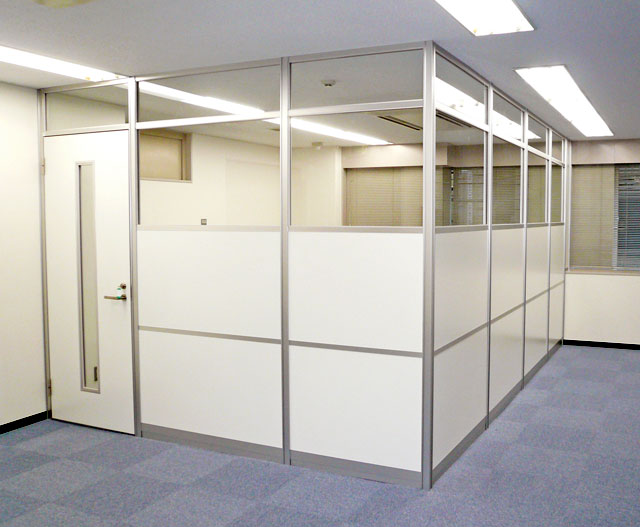 本アルミパーティションは、設置する目的に応じて簡単に移動・設置することができ、複雑化・専門化していくオフィスの機能に柔軟に応えします。