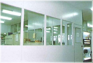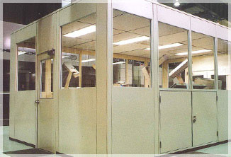 ワークステーションは、スタットイン60に天井を取付けたブースです。工場等の天井の高いスペースに、各種の部屋を設置する事は、支柱を建てる上でも問題があり、また、たとえ出来たとしても工場の構造上、完全密閉が大変難しく、たった1つの部屋を設置するだけでもいろいろな職種を必要とし、従って工期を要する等、問題があります。 そうした欠点を全て解消した製品が、ワークステーションです。