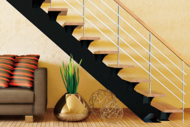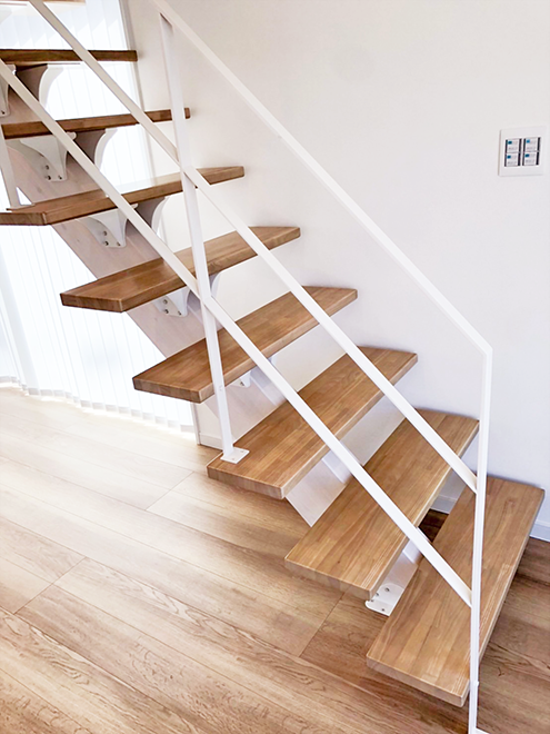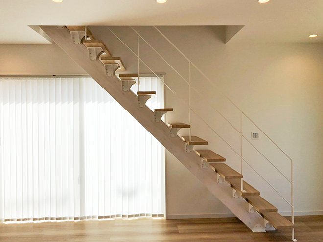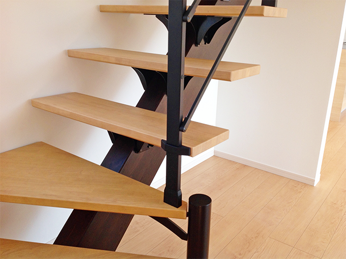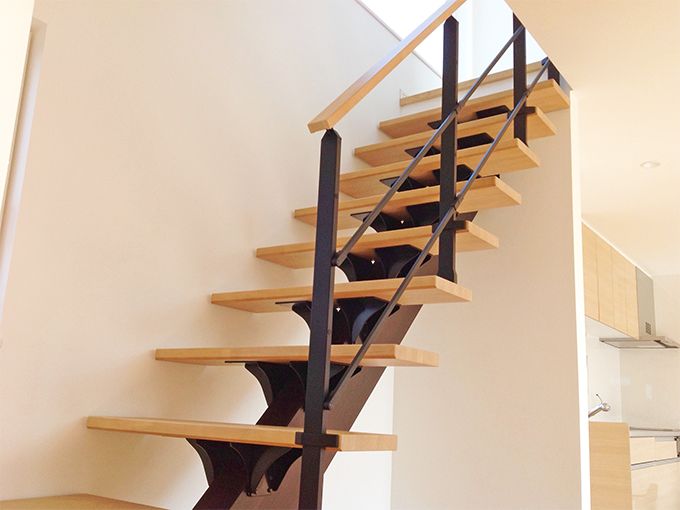施工性とデザイン性を両立。スタイリッシュな木製一本桁階段。