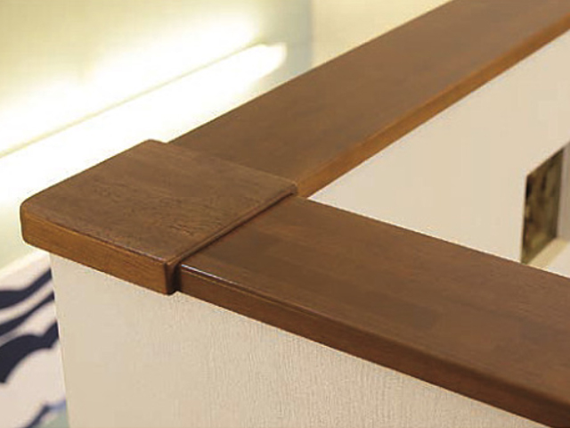 巾木とよばれる細長い横木で、踏板と壁のつなぎ目を覆うように施工する納め方です。L型巾木は壁に沿うように設置します。