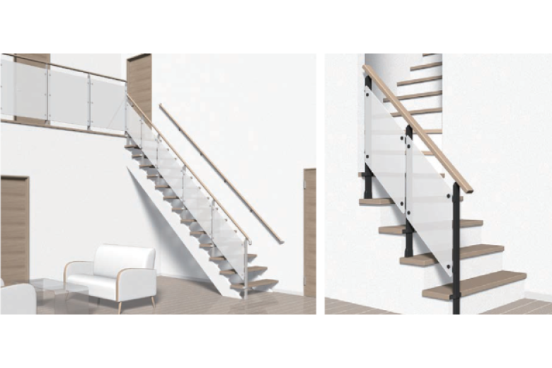 パネルの面材は8mm厚のアクリルを使用。アクリルはマット調・クリア調の2タイプをご用意しております。踏面180~240mm、蹴上180~230mmまで対応しております。