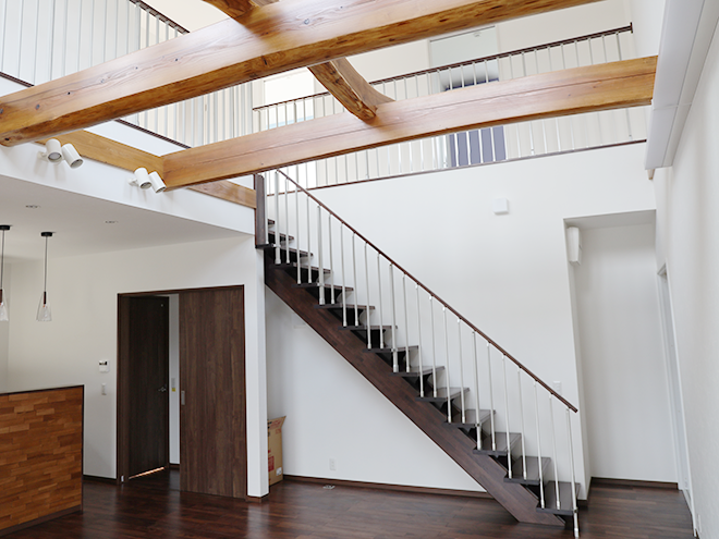 すっきりした印象で階段を引き立てるデザイン。コストも抑えられます。