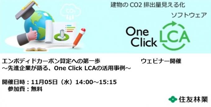 住友林業は2025年11月5日(水) に、建築物のCO₂排出量を見える化する『One Click LCA』のWEBセミナーを開催いたします。