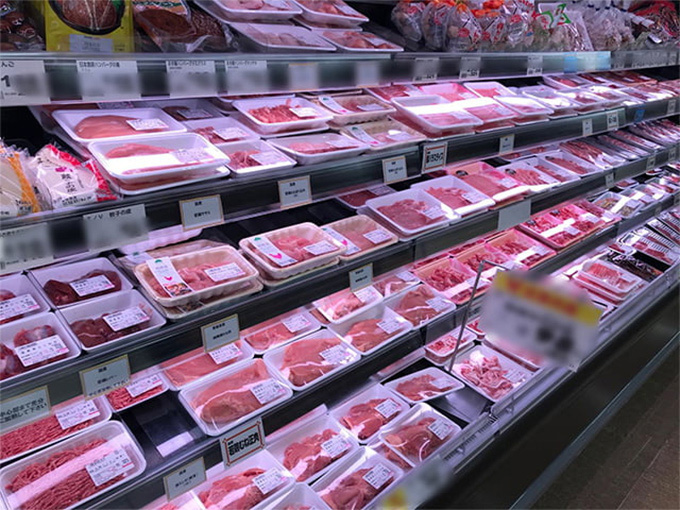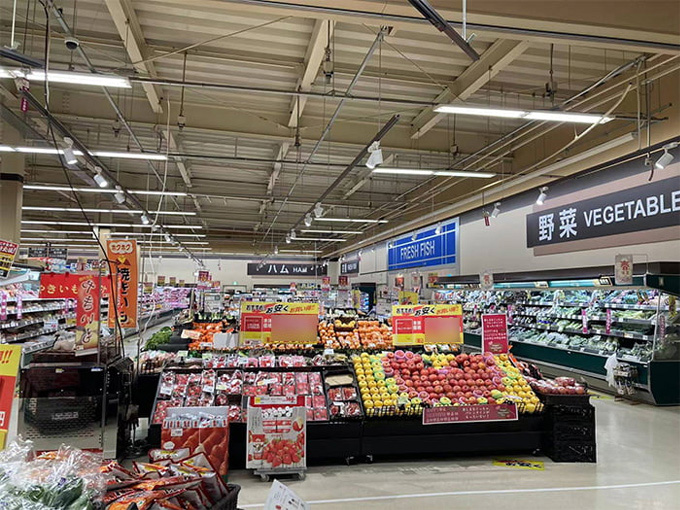 高彩度LED照明の光が食品売り場の活性化に貢献。