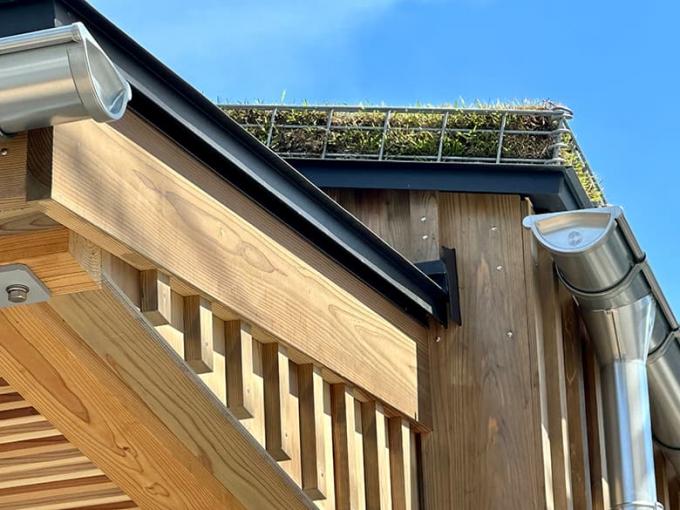 耐久性の高いスチール製で、様々なギミックを活かし、建物の外観を損なわない「見せる樋」として多くのプロジェクトで採用されています。