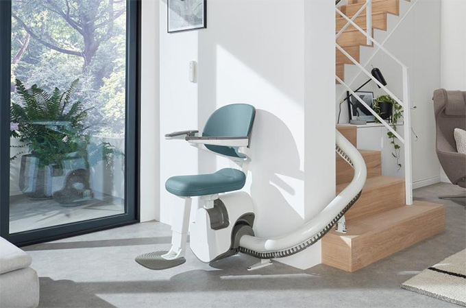 最先端のテクノロジーで、狭くて急な階段にも設置が可能な階段昇降機。