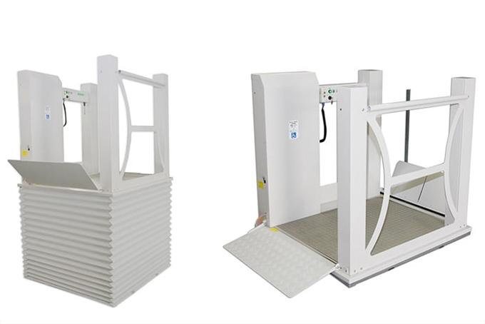 昇降高さ106.5cm 四方向より乗り入れ可能な段差解消機。