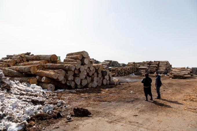 訪れた2月には、原木ヤードには、工場で加工する1年分の原木が山積みされていました。国内外から買い付けた広葉樹の丸太が重なる様は圧巻です。