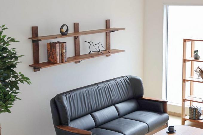 木材に取り付けてシンプルな壁面収納を作ることができるユニットおよびオプションパーツです。