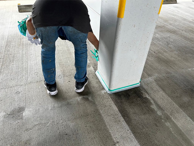 あわせて、劣化が見られた柱とコンクリート床面の取り合い部分のシールも再処理し、止水・防水工事を完了しました。