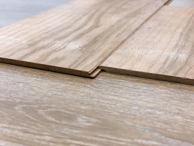 増し貼り・重ね貼りのフローリングといえば、一般的に出回っているのはフロアタイルやクッションフロアなどの新建材が主流ですが、無垢挽板の増し貼りフローリングは、通常の複合フローリングでも使用される厚みの挽板を使用しているため、無垢フローリングならではの風合いや質感がしっかり体感できます。