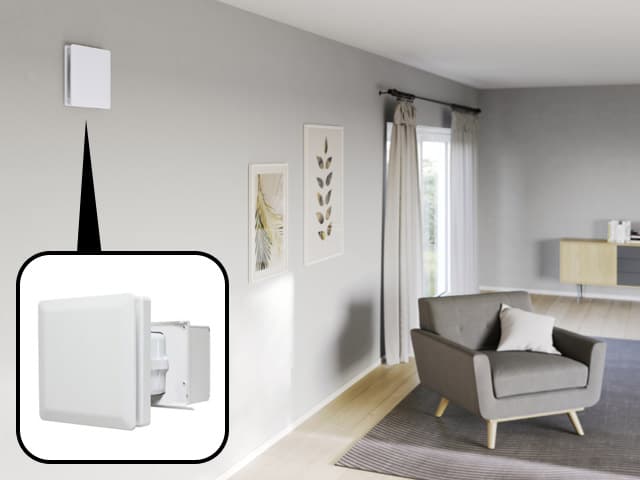 VLR-70 Eは、大がかりなダクト配管を必要とせず、壁に直接設置できるダクトレスタイプ。
