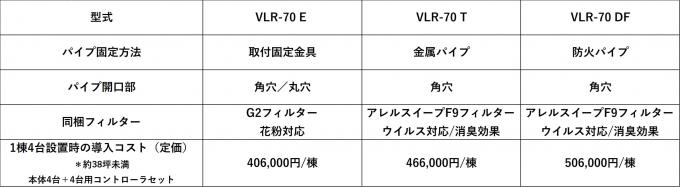 そこで高い性能はそのままに、価格を抑えた『VLR-70 Eシリーズ』の発売が決定しました。