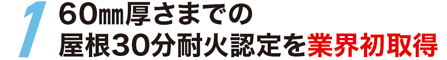 35mm・45mm・60mm厚さの屋根30分耐火認定を業界初取得。